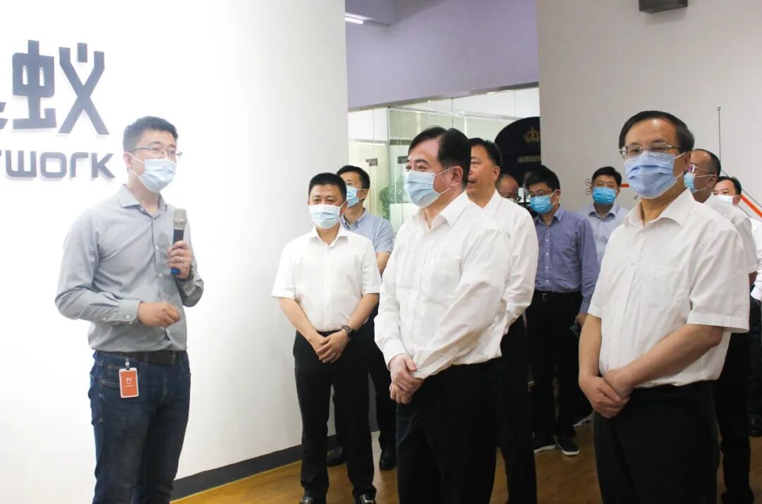 2020年5月28日上午,杭州市委副书记、市长刘忻一行莅临未来研创园实地调研企业迅蚁科技的发展及复工复产情况。杭州市委常委、组织部部长毛溪浩;杭州市委常委、余杭区委书记张振丰等领导陪同调研。