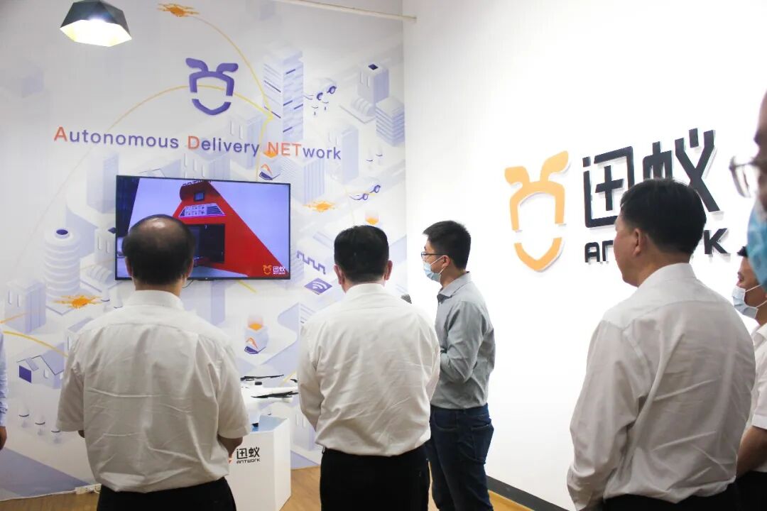 在调研参观的过程中,迅蚁CEO章磊就公司成立以来在无人机物流领域的发展历程和未来持续拓展城市空中配送网络的规划向刘市长做了详细汇报。