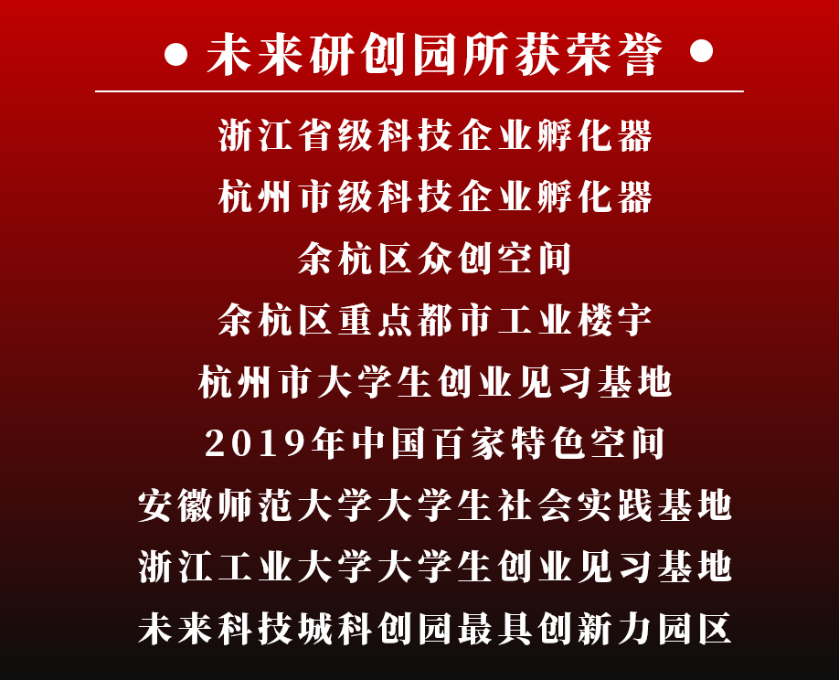 截止2019年年底,科技型中小微企业占总入驻企业的四分之三以上,拥有10余家海创园评审项目、4家鲲鹏计划项目、余杭区科创型企业3家,国家级高新技术企业7家,市级高新技术企业4家,雏鹰计划项目4家,浙江省中小微企业3家,获得投资的企业有10余家,国家千人计划2人、省千人计划2人,硕士以上人才100+,并形成了具有代表性、成规模的产业研发中心。