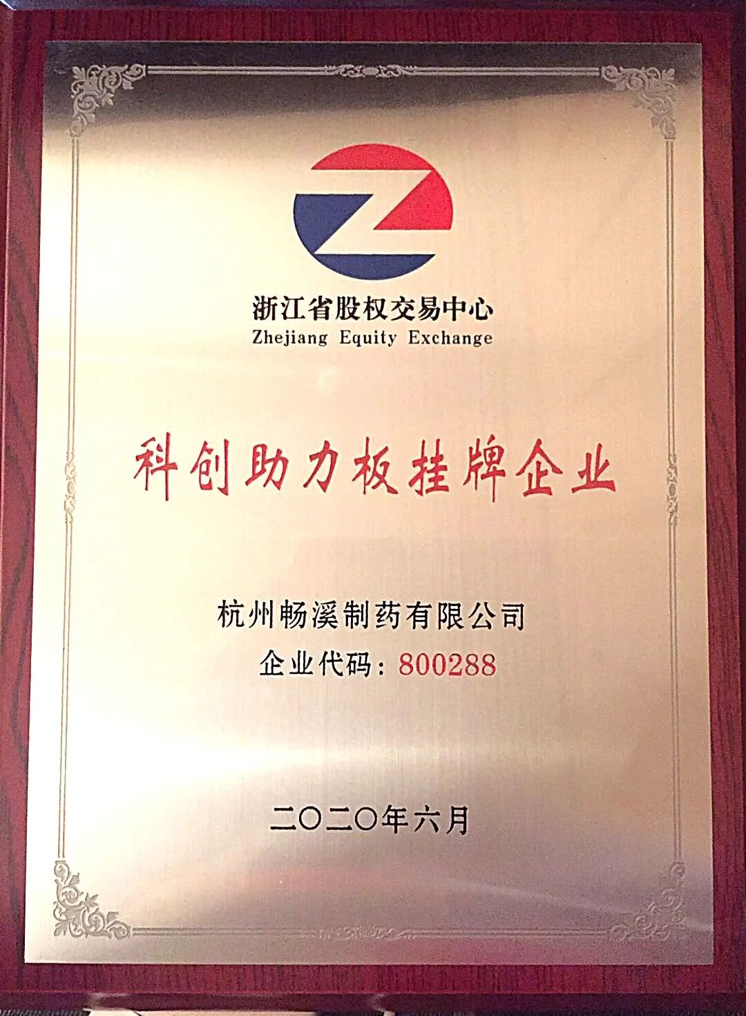在活动中,华研创科旗下园区企业杭州畅溪制药有限公司入选浙江首批科创助力版挂牌企业,并被授予荣誉奖牌。