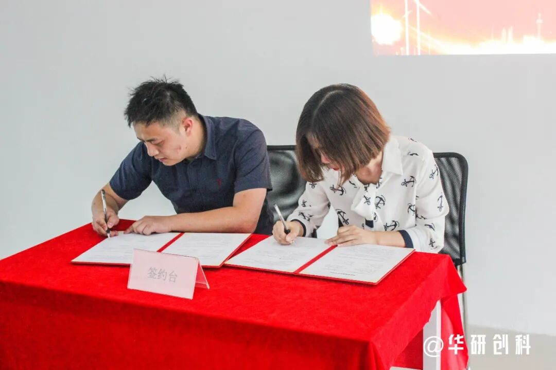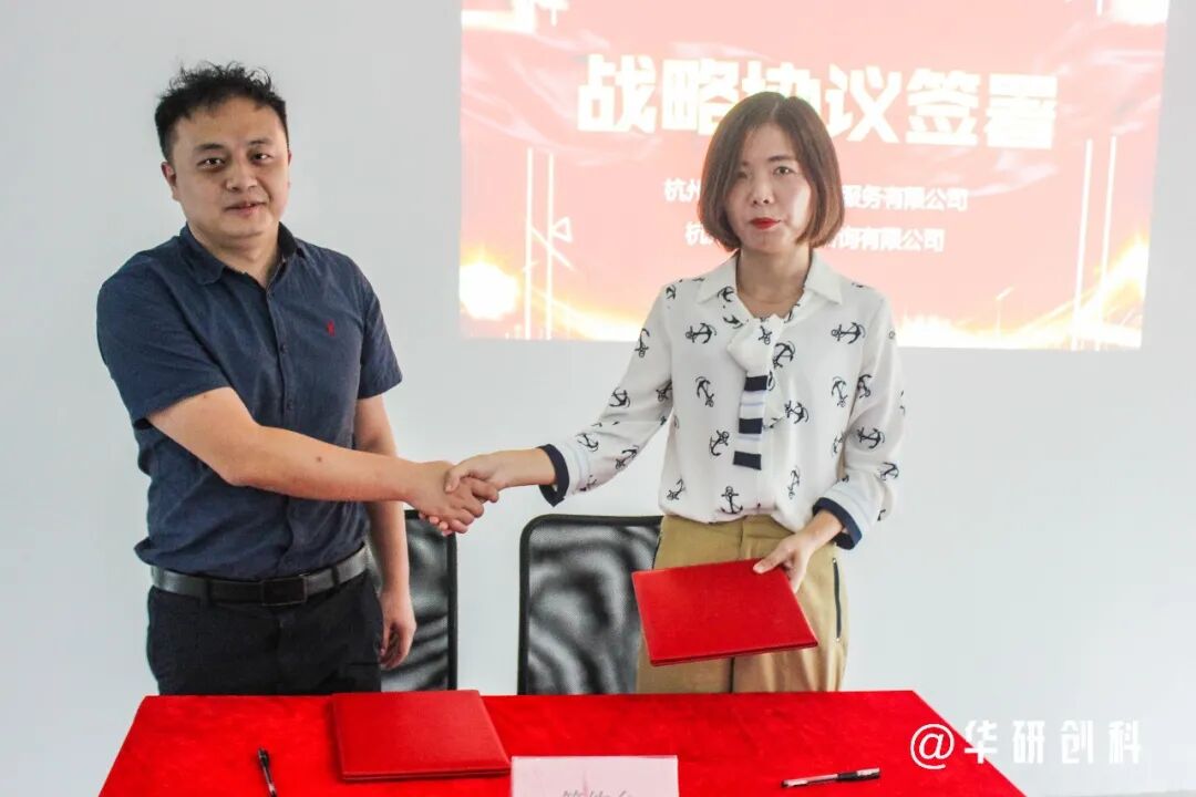 在活动现场,杭州华研创科创业服务有限公司总经理任琳琳女士与杭州薪融财务咨询有限公司总经理何楠先生共同签署了空间服务合作协议,共同致力于解决中小企业财务风险、财务规范、及财务领域,帮助企业更好地生存与发展。