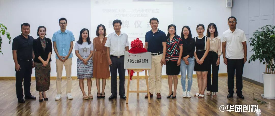 致辞结束安徽师范大学党委常委毕副校长同杭州华研创科技发展有限公司创始人阳总经理为杭州未来研创园的安徽师范大学社会实践基地进行了揭牌仪式。