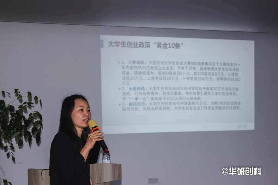 首先由主办方领导杭州华研创科技发展有限公司联合创始人任琳琳总经理为活动进行了致辞,并作了企业及园区的相关说明。并介绍了杭州未来研创园的创业服务及已经成为杭州市大学生创业基地的未来研创园可以为各位大学生们提供的相关服务和支持。