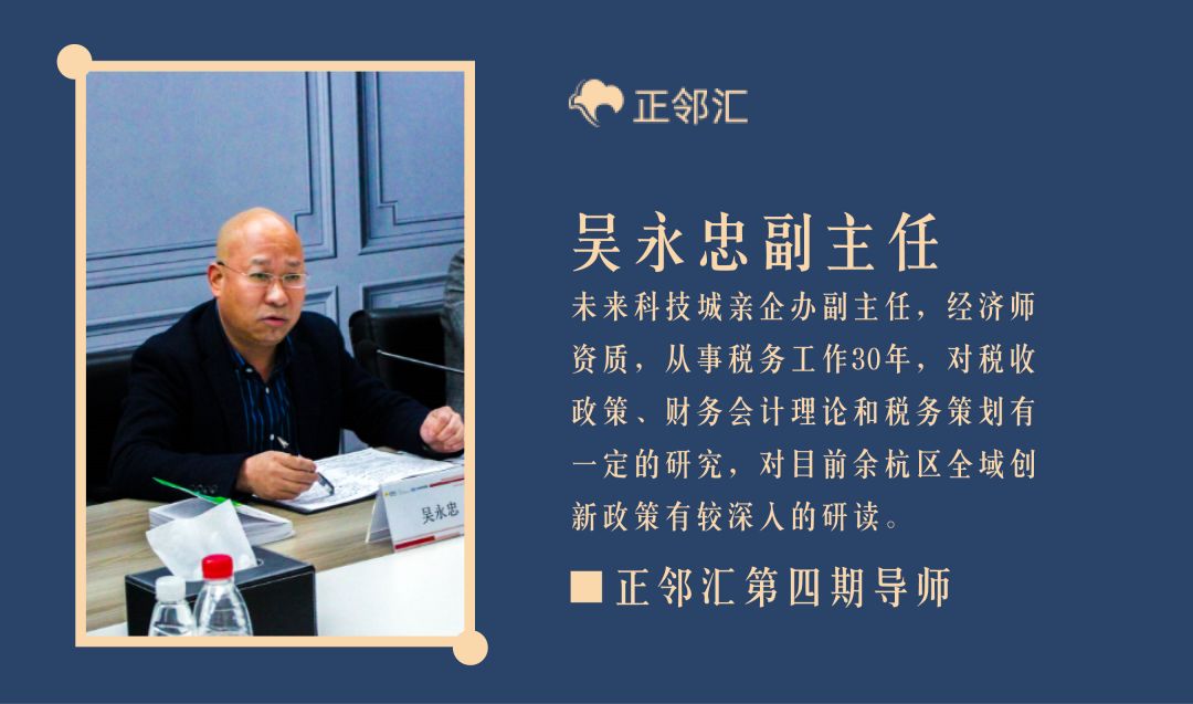 本期我们在整合了会员企业的相关需求之后,联系到了未来科技城亲企办副主任吴永忠作为本期的主讲导师,为会员们进行关于《余杭区全域创新高质量发展66条相关政策》的分享,帮助各位会员学习快速有效的了解最新政策,从而帮助企业及时提报最新优惠利好政策,完成企业创新转型,获得企业成长动力,并且帮助企业与政府领导搭建有效沟通的平台。
